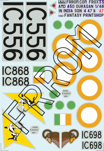 FR0X27 Ouragan India 1/48 th IC692, 2 versions (taille A7)